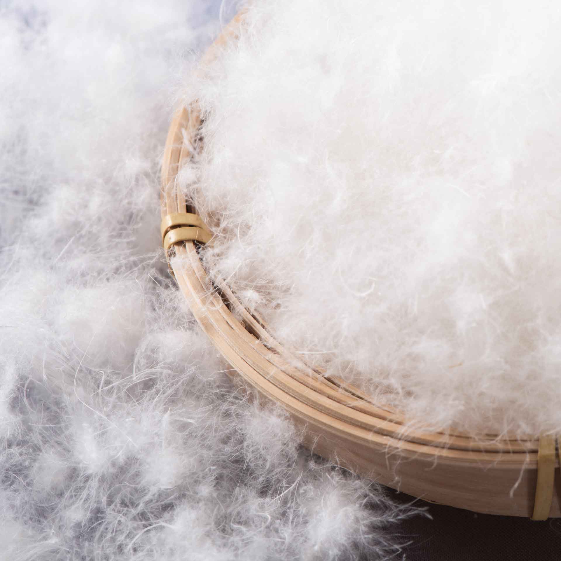 Large-flake goose down is characterised by its high fluffiness. This means that they are able to store a lot of air and therefore provide particularly good insulation against the cold. At the same time, they are extremely light and breathable, which helps to ensure that duvets and pillows are not only warm but also pleasantly airy.